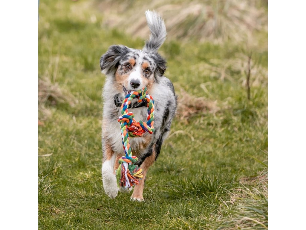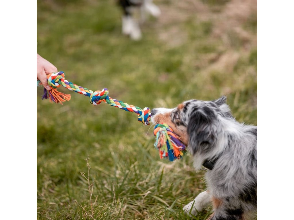 Toto hrací lano je vyrobeno z bavlny a přispívá k péči o zuby.