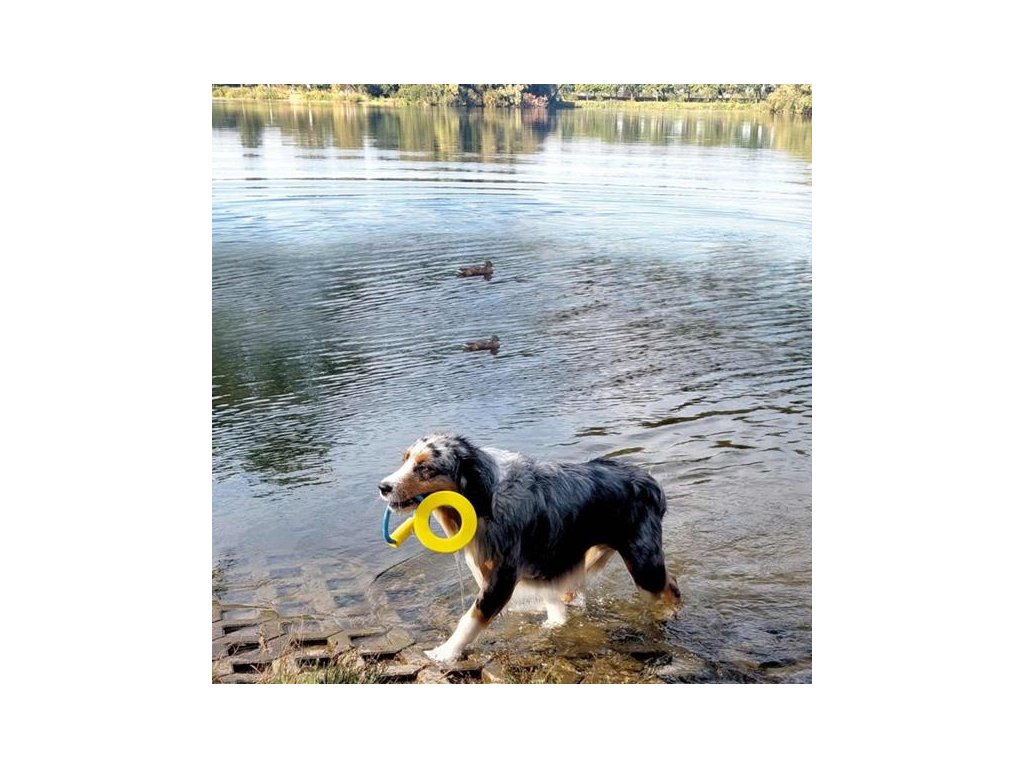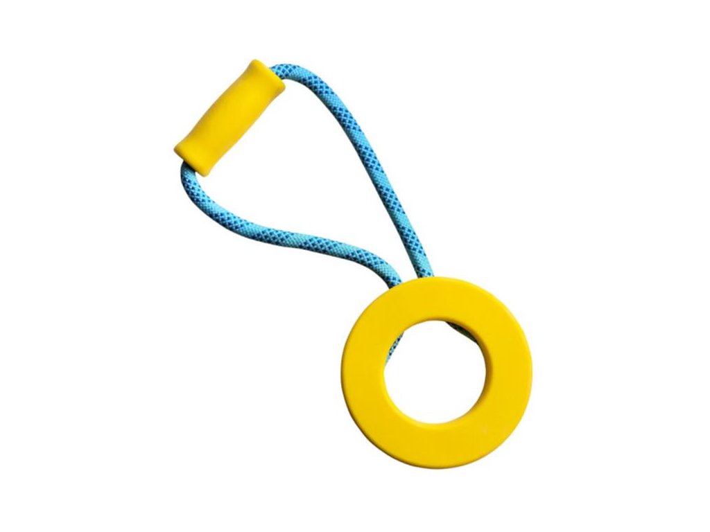 Tato hračka je ideální pro psy, kteří milují plavání a aportování. Kruh a rukojeť jsou vyrobeny z vysoce odolné, a přitom lehké TPR gumy, mají výraznou barvu, aby byly dobře vidět na hladině, a jsou spojené pevným nylonovým lanem. Hračka je díky tomu vhodná k vodním hrátkám i ke kousání. Při žvýkání pomáhá čistit zuby a masíruje dásně, čímž podporuje zdraví ústní dutiny. Není určená k přetahování.