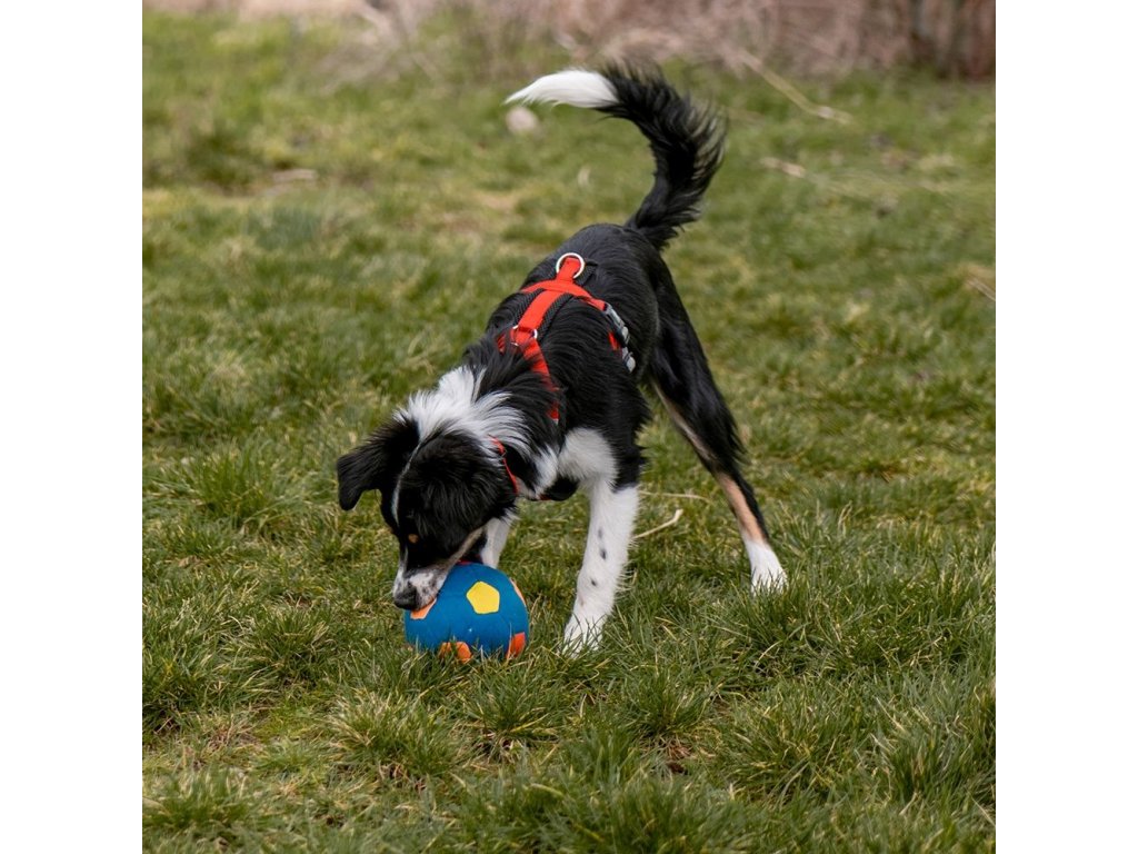 Tento míček je navržen speciálně pro velké psy, kteří potřebují odolnou a interaktivní hračku, která vydrží jejich energické hry.