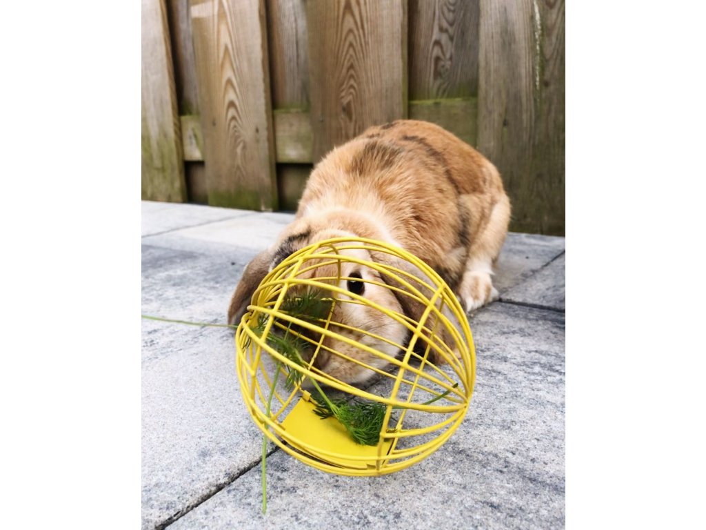 Krmítko ve tvaru míčku.