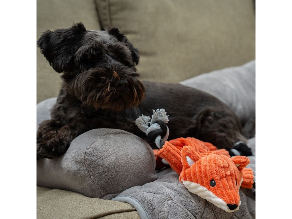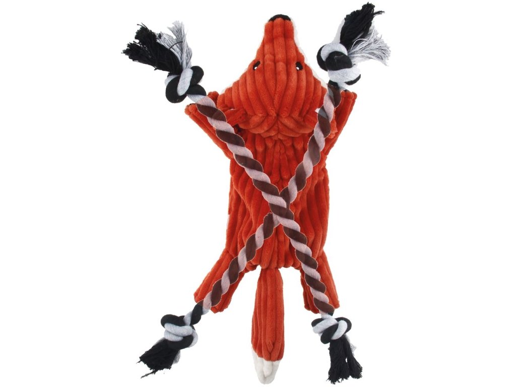 Hračka pro psy ke kousání a zábavu. Liška v oranžové barvě a celkovým rozměrem 38 cm. Hračka je ideální pro psy, kteří chtějí hrát a mazlit se. Je ideální k mazlení a lano je určené k tahání a hraní.