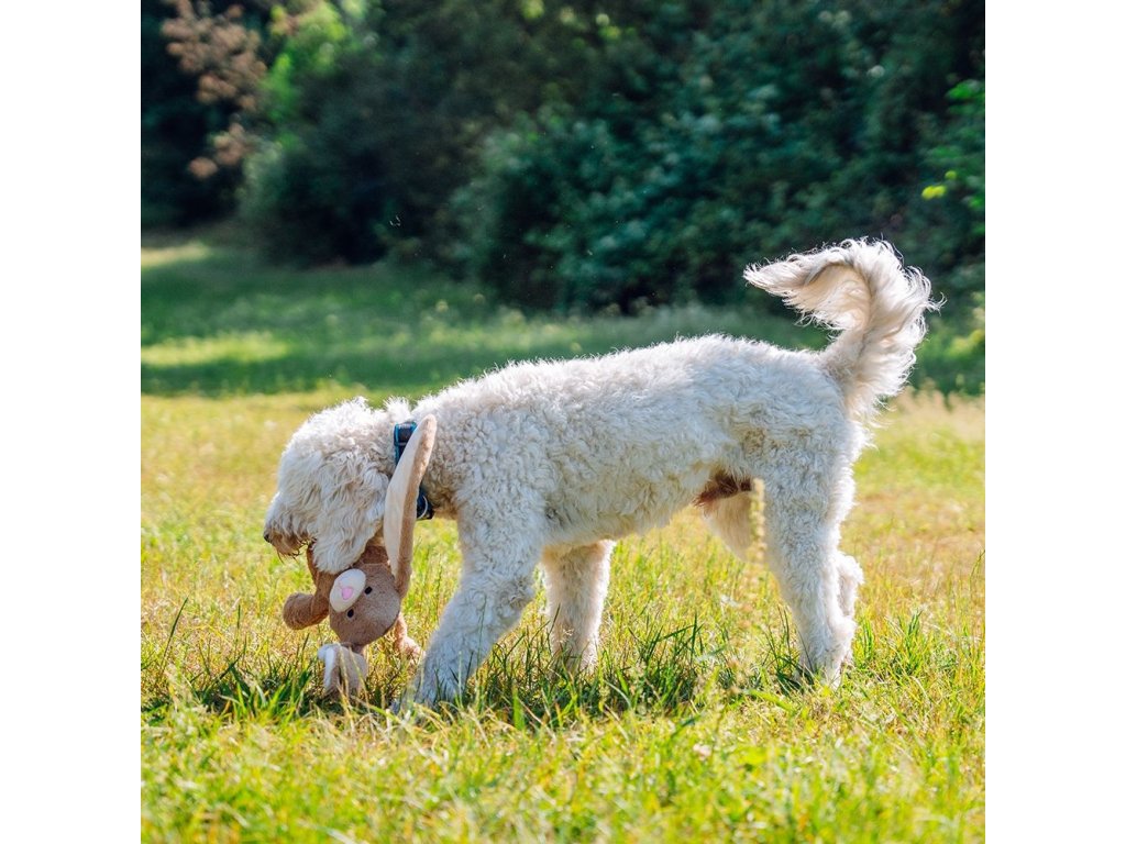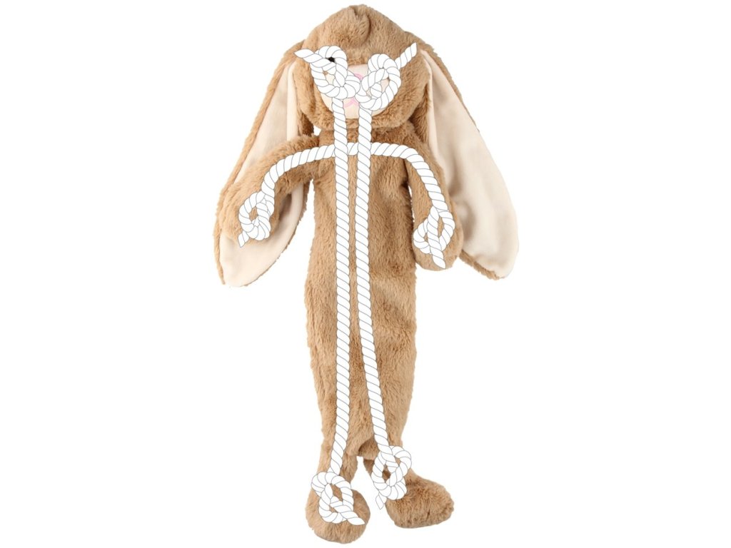 Hračka pro psy ke kousání a zábavu. Králíček v hnědé barvě a celkovým rozměrem 54 cm. Hračka je ideální pro psy, kteří chtějí hrát a mazlit se. Je ideální k mazlení a vnitřní lano s uzly jsou určeny k tahání a hraní.