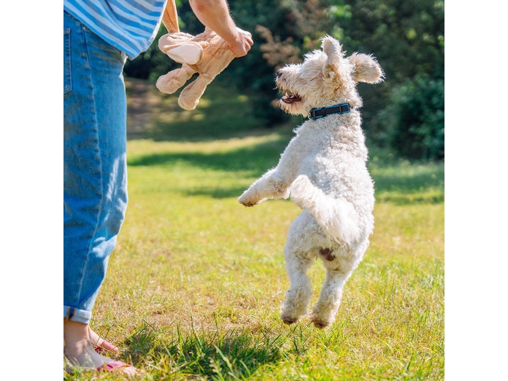 Hračka disponuje všitým lanem, čímž pes při kousání tuto hračku rychle nezničí.
