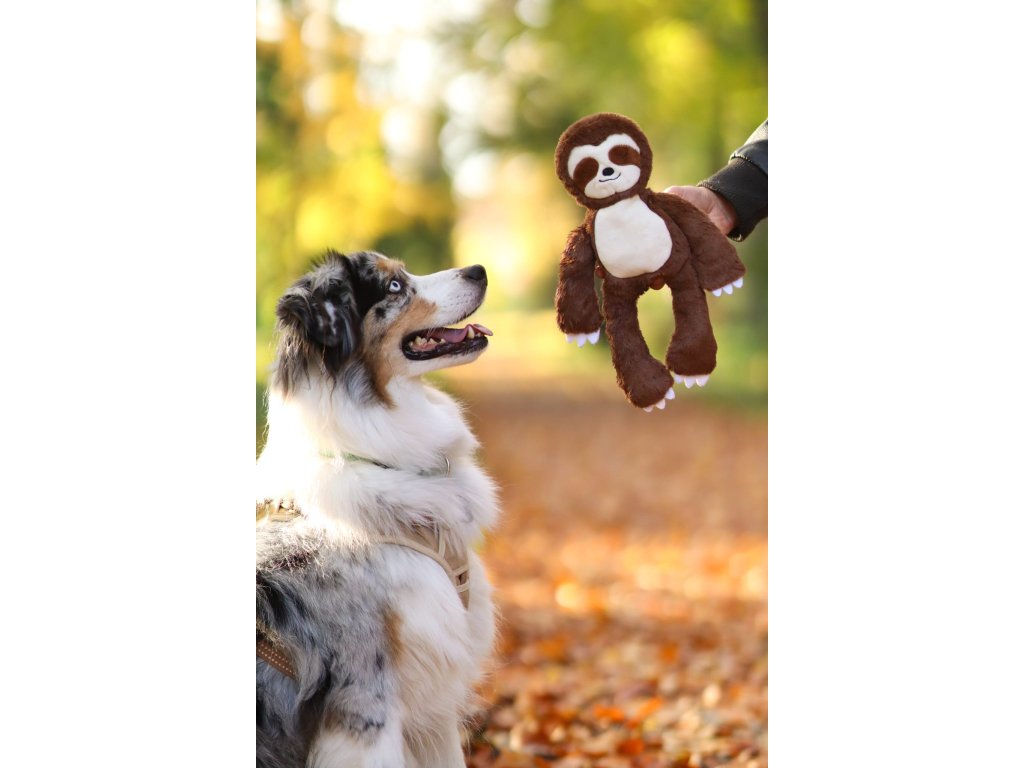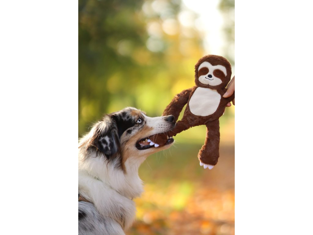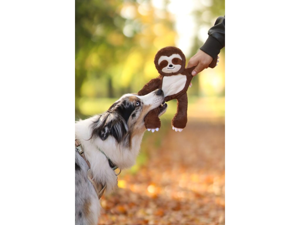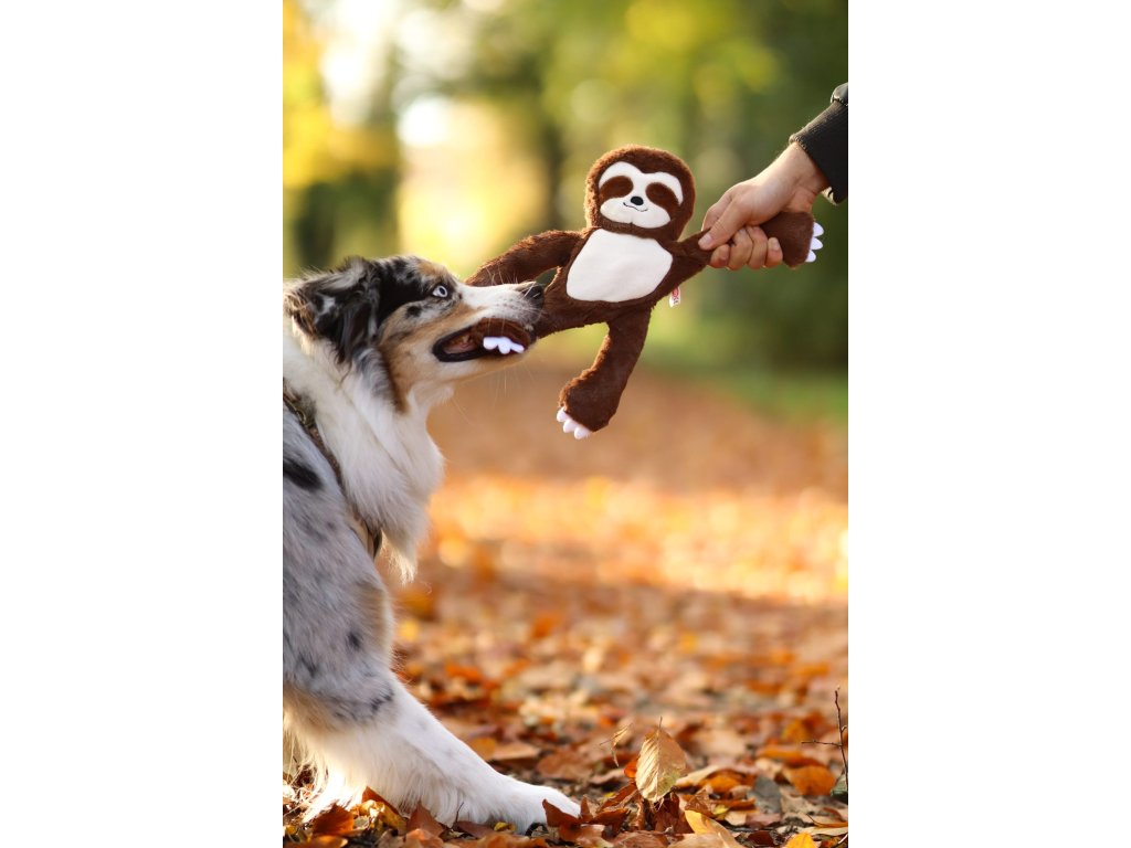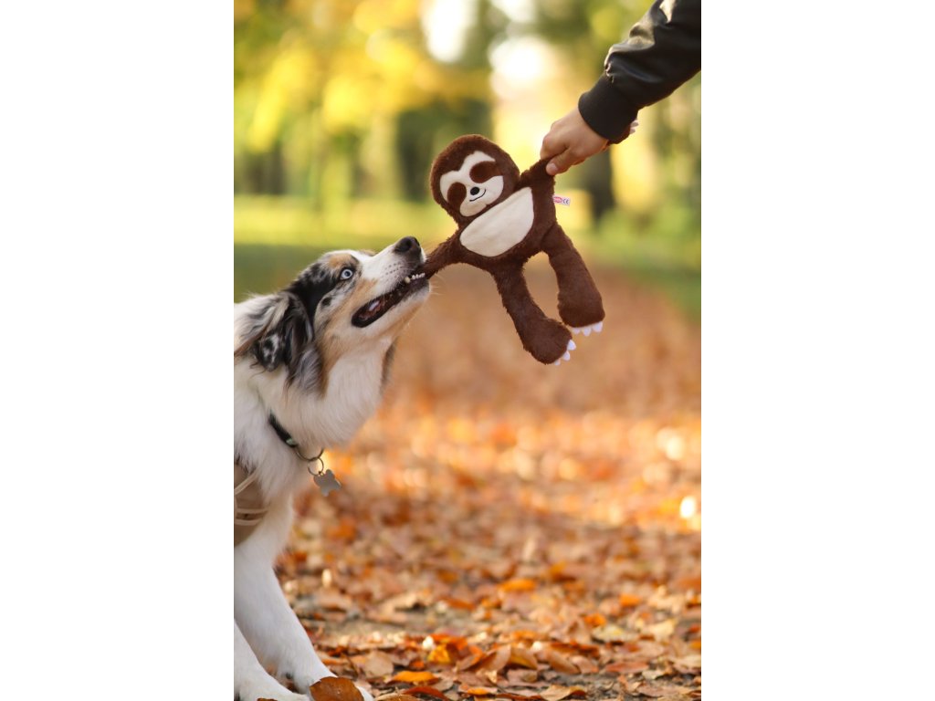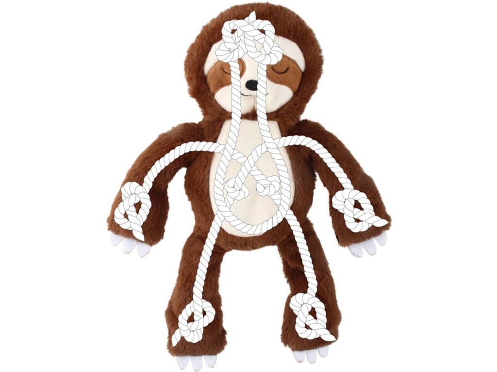 Hračka pro psy ke kousání a zábavu. Lenochod v hnědé barvě a celkovým rozměrem 34 cm. Hračka je ideální pro psy, kteří chtějí hrát a mazlit se. Je ideální k mazlení a vnitřní lano s uzly jsou určeny k tahání a hraní.