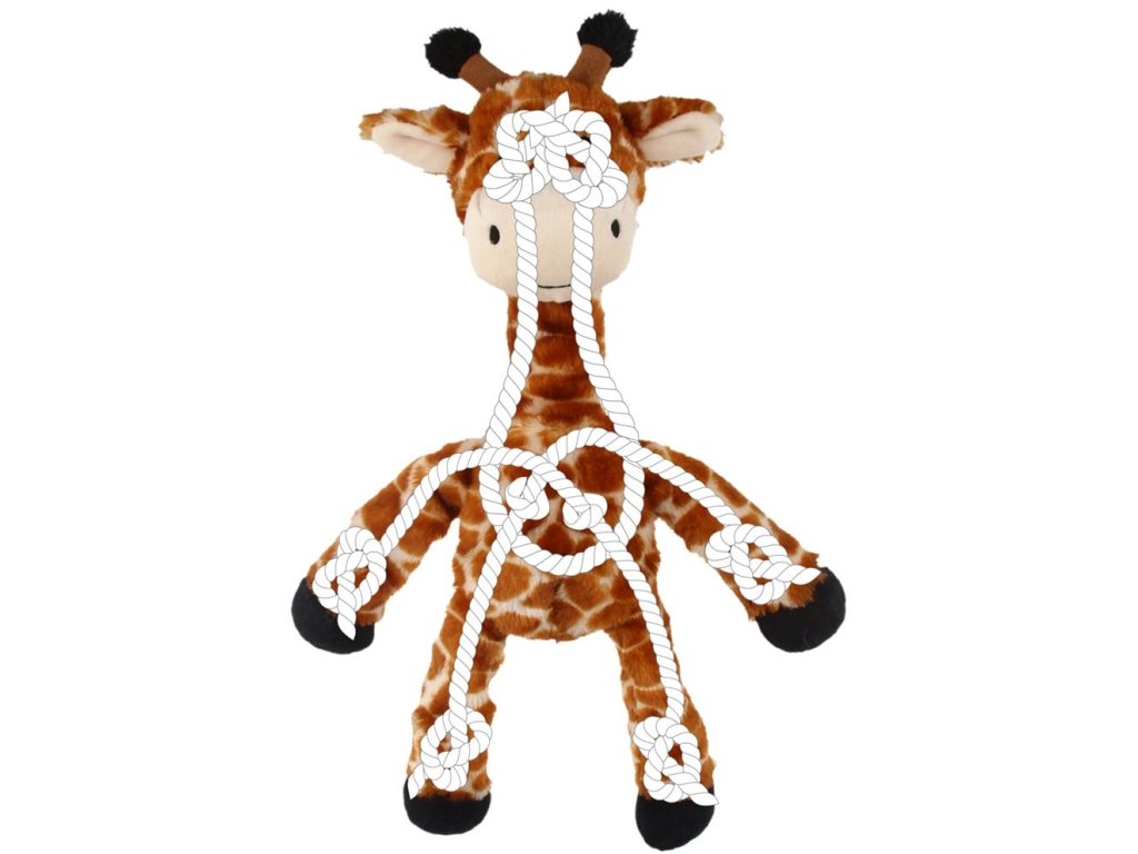 Hračka pro psy ke kousání a zábavu. Žirafa v hnědé barvě a celkovým rozměrem 42 cm. Hračka je ideální pro psy, kteří chtějí hrát a mazlit se. Je ideální k mazlení a vnitřní lano s uzly jsou určeny k tahání a hraní.