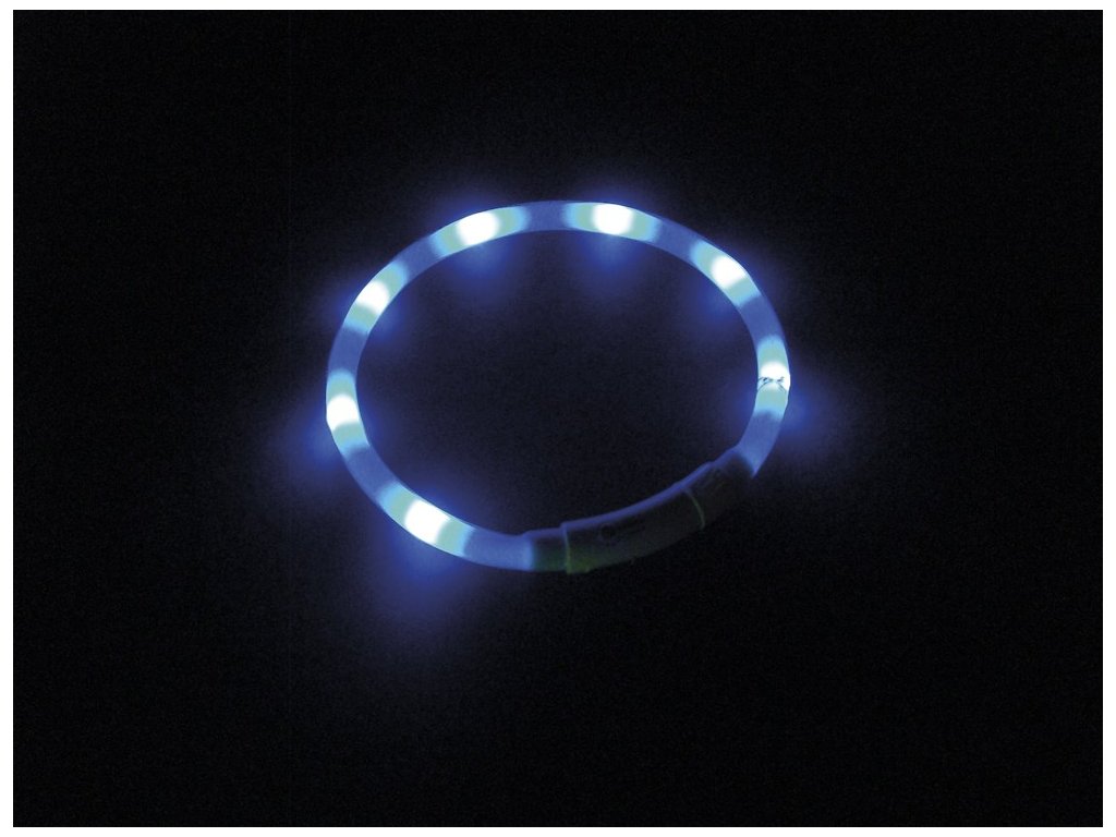 Svítící LED kroužek na krk psa, vyrobený ze silikonu. Celková délka 45cm, délku je možné libovolně zkracovat.