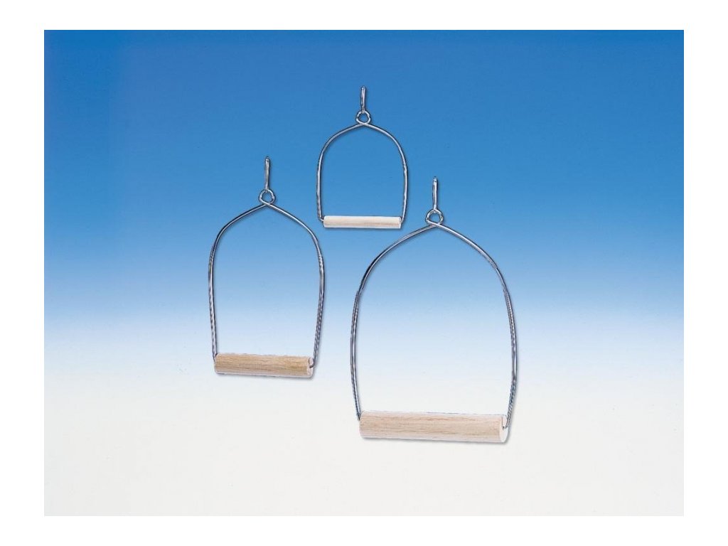 Dřevěná obloukovitá houpačka pro papoušky.