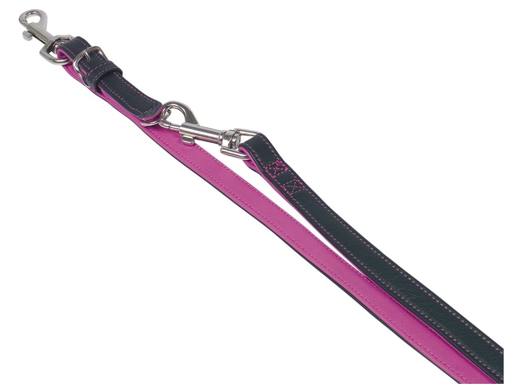 Pevně prošité kožené vodítko na psy z hladké měkké hovězí kůže. Vrchní strana vodítka černá, elegantní barevné lemování na spodní straně vodítka. Vyrobeno z italské kůže (certifikované EU).