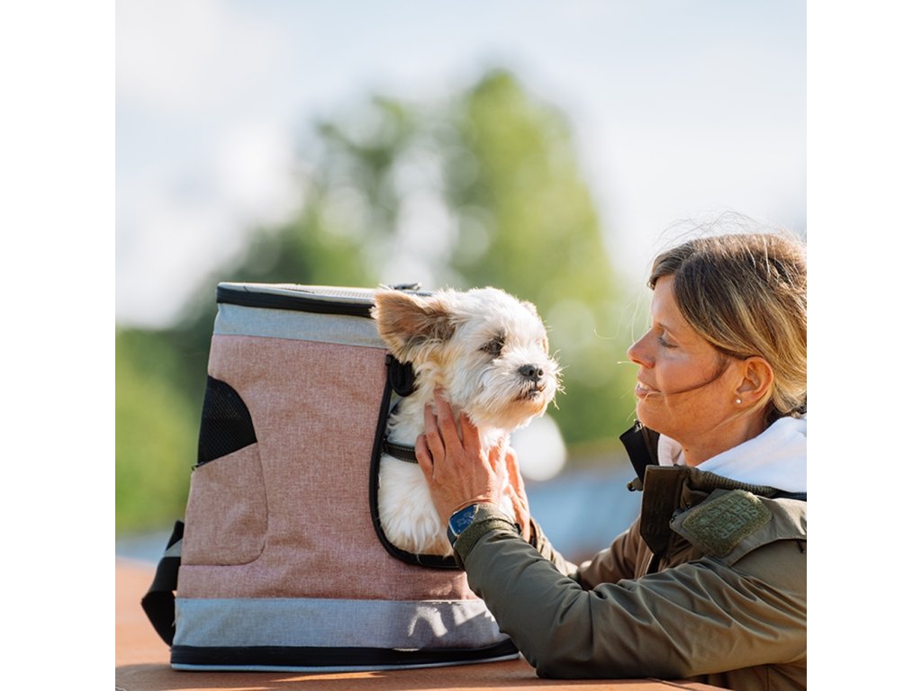Zadní batoh Nobby PLATA na kočky a malé psy o maximální hmotnosti do 10 kg. Je vyroben z odolného, omyvatelného mikrovlákna. Ideální pro trekking a větší výlety, má velmi stabilní dno a pohodlná polstrovaná záda. Integrovaná karabina uvnitř batohu zabraňuje zvířeti vyskočení ven. Síťové části zaručují cirkulaci vzduchu uvnitř i při zavření batohu. Batoh má také dvě malé kapsičky na pamlsky nebo hračky.