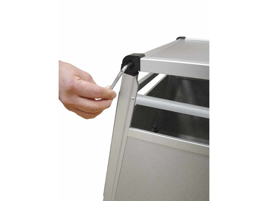 Přepravní hliníkový box pro psa od německé značky Nobby je ideální řešení do auta pro cestování se psem. Přepravní box pro psa zvyšuje bezpečnost při nárazu díky robustnímu rámu z kvalitního hliníku. Šikmá přední a zadní strana umožňuje optimální používání zavazadlového prostoru.