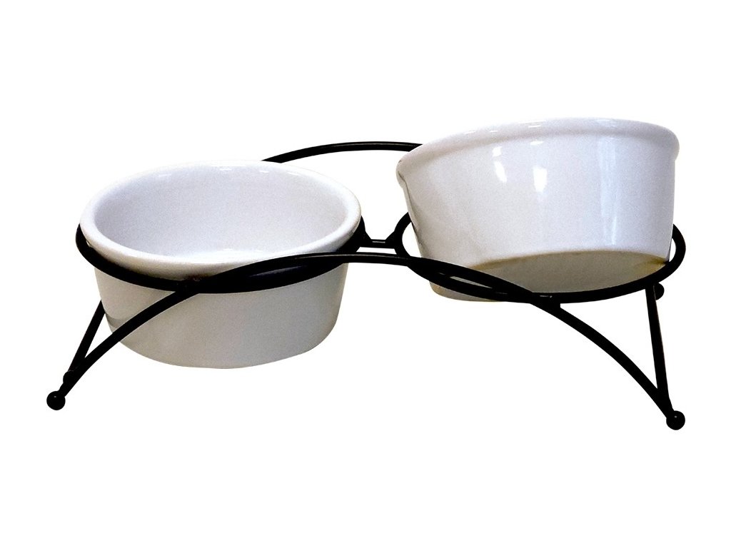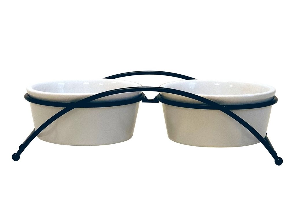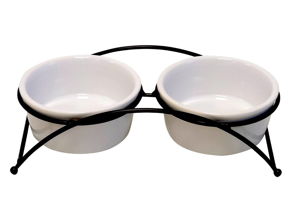 Součástí stojanu jsou dvě odnímatelné keramické misky o objemu 2 × 300 ml, každá o rozměru Ø 12 × 5,5 cm, které lze snadno vyjmout a umýt. Díky vyvýšené konstrukci je krmení pro vašeho mazlíčka pohodlnější a šetrnější k jeho kloubům i zažívání.