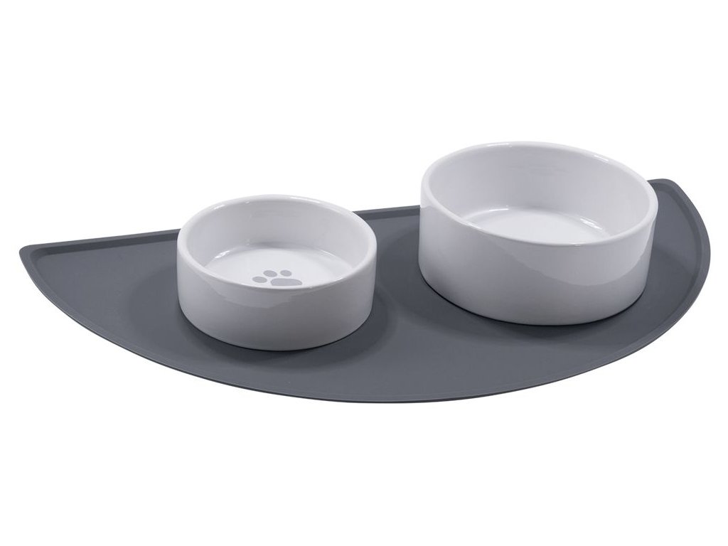 Silikonové prostírání s okrajem, vhodné pod misky s vodou a krmením. Díky prostírání zůstanou mističky tam, kam patří. Vysoký okraj brání rozmetání krmiva nebo vylití vody po okolí.