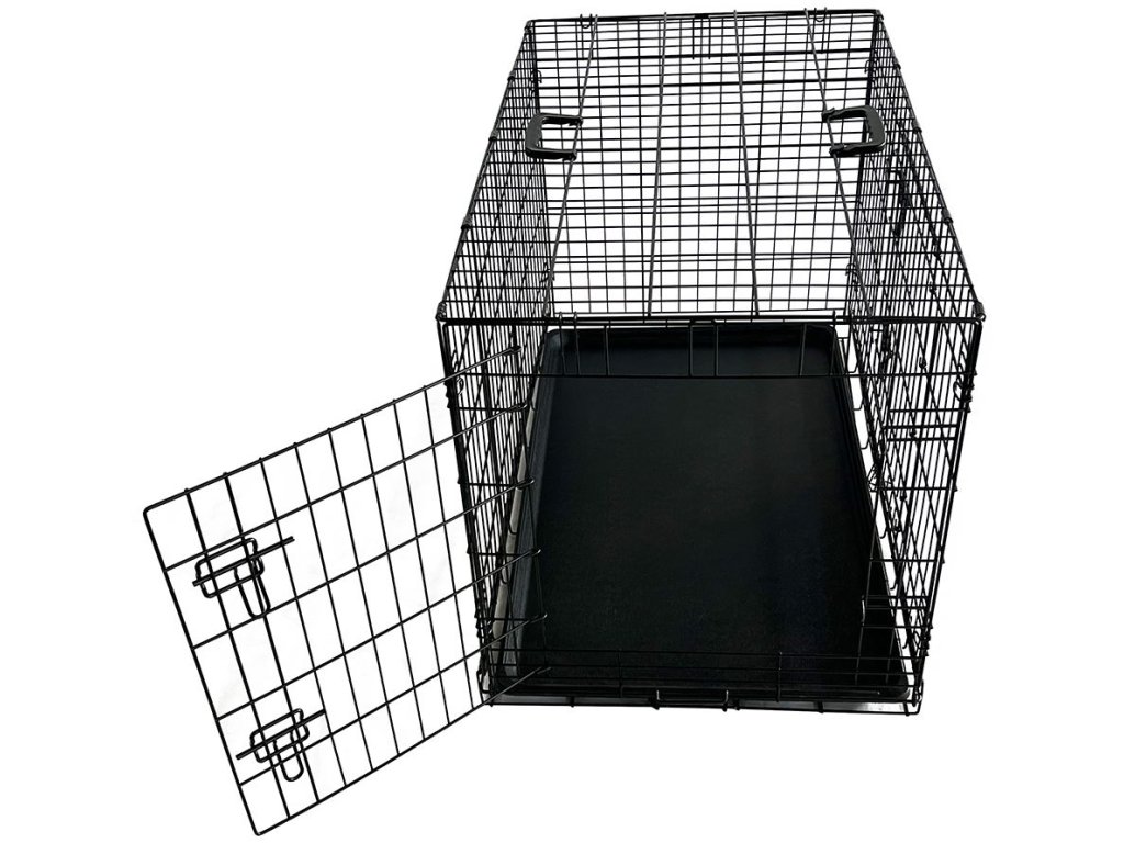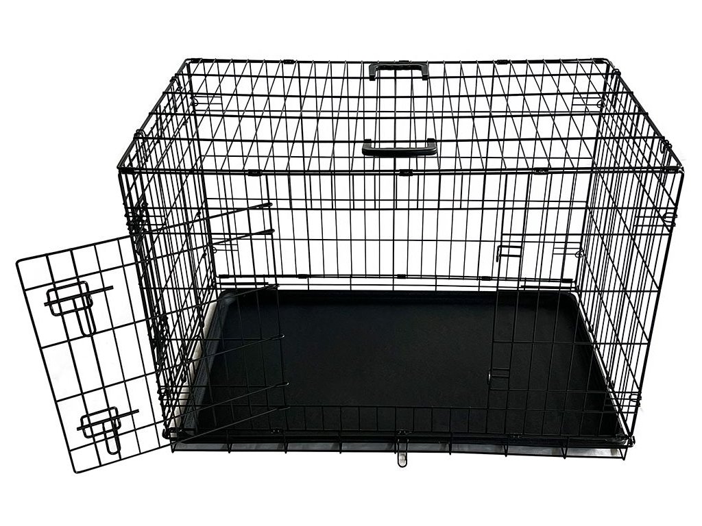 Praktická skládací klec značky Nobby. Klec má dvoje bezpečně uzavíratelné dveře (jedny vpředu a jedny z boku) a dá se jednoduše a rychle složit a rozložit, potřebujete-li šetřit místem.