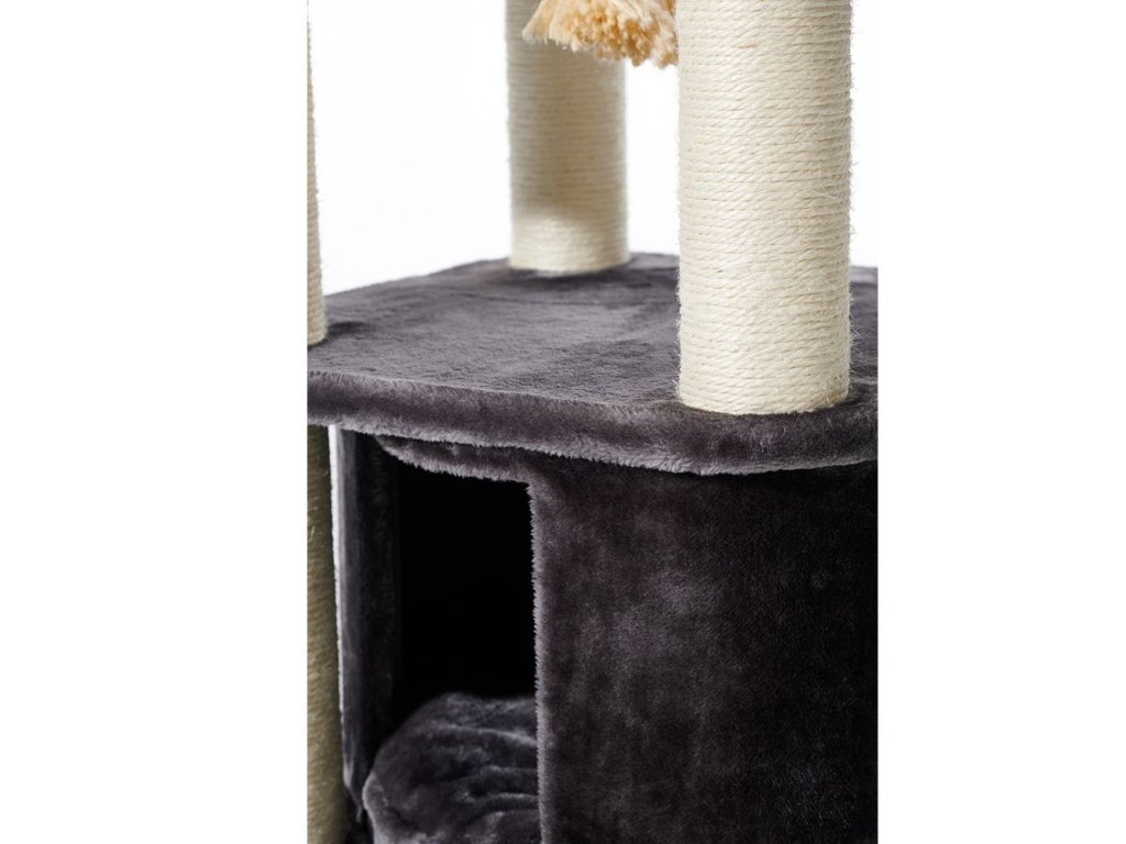 Škrabadlo Mugla od německé značky Nobby je ideálním hřištěm pro vaši kočku! S pohodlnými polštáři a útulnými prohlubněmi poskytuje toto škrabadlo dokonalé místo k odpočinku a hře. Kmen je potažen sisalem, což z něj dělá perfektní škrabací místo a poskytuje tak potřebnou péči o drápky pro vaši kočku. Kromě toho má škrabadlo Mugla vzrušující lano, které si vaše kočka může užít. Tmavě šedá barva škrabadla skvěle zapadne do každého interiéru a udělá z něj stylový doplněk ve vaší domácnosti. Škrabadlo je pevné a odolné, takže se z něj bude vaše kočka těšit po mnoho let.