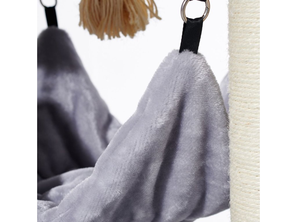 Škrabadlo Ordu od německé značky Nobby nabízí vaší kočce vše, co potřebuje ke hře, relaxaci a broušení drápků! Se škrabadlem, útulnou houpací sítí, pohodlnými prohlubněmi a polštáři a vzrušujícím lanem nabízí toto škrabadlo mnoho příležitostí pro aktivitu a relaxaci. Kmen je potažen sisalem, díky čemuž je ideálním místem pro škrábání a poskytuje tak potřebnou péči o drápky vaší kočce.