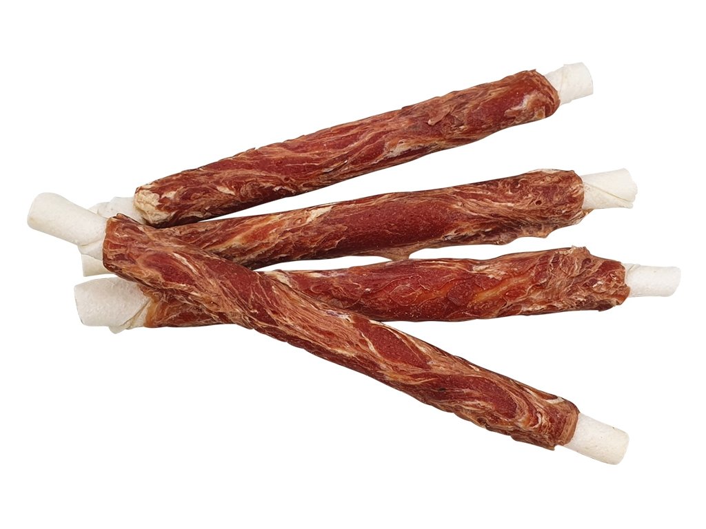 Obsahují 39,6% kachního masa, 2,5% masa z tresky, 20% surové kůže a pouze 3% tuku!