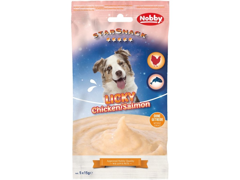 Nobby Starsnack Licky Dog Masové pyré kuře s lososem 5x15g