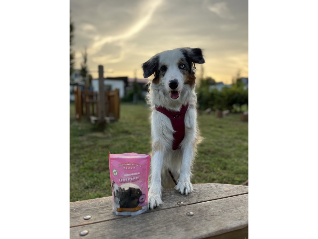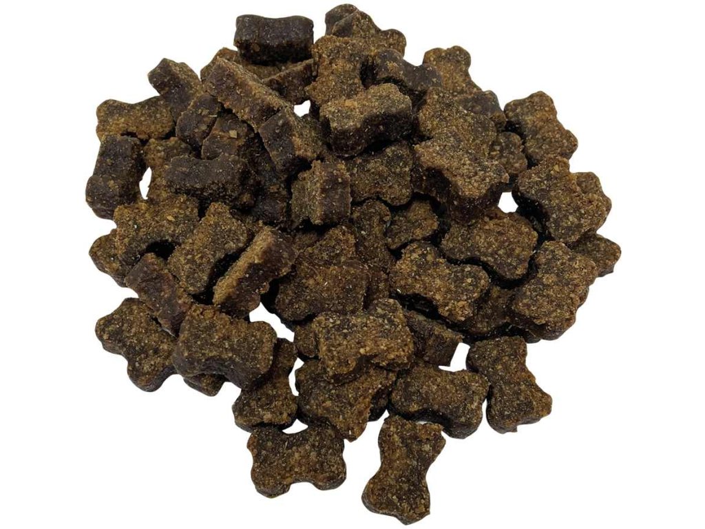 Poloměkké bezlepkové šťavnaté kostičky pro psy s koňským masem. Odměny jsou díky svému složení velice chutné, výborně stravitelné a také zdravé.Složení: pštrosí maso a vnitřnosti 51%, bramborová mouka, bramborový škrob, mrkev, jablko, lososový olej, směs sušených bylinek (máta peprná, kmín, pískavice, lékořice, kurkuma, fenykl a heřmánek), rostlinný olej a minerální látky.Analýza: hrubé proteiny 8,4%, hrubé oleje a tuky 1,9%, hrubé popeloviny 3,2%, hrubá vláknina 1,3%, vlhkost 21,2%Podávejte jako odměnu. Zajistěte dostatek pitné vody. Určeno pro psy.