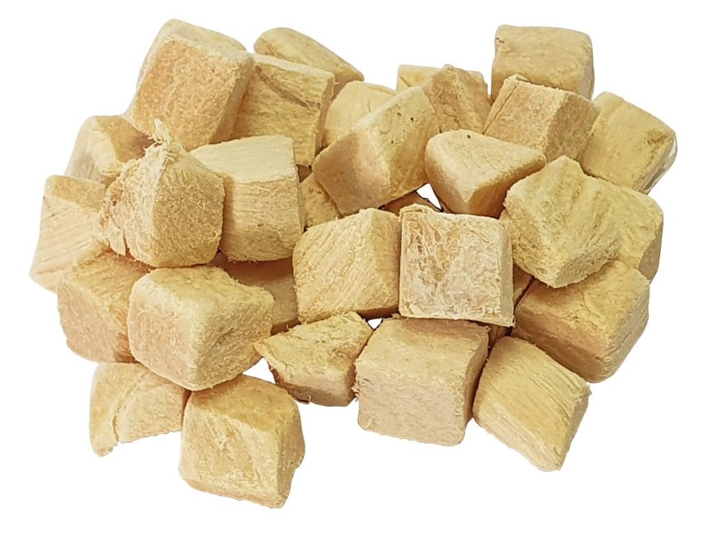Vyrábí se speciálním procesem, což znamená, že živiny jsou téměř zcela zachovány. Jemné sušení mrazem zajišťuje velmi dobrou chuť a vysokou kvalitu bílkovin.