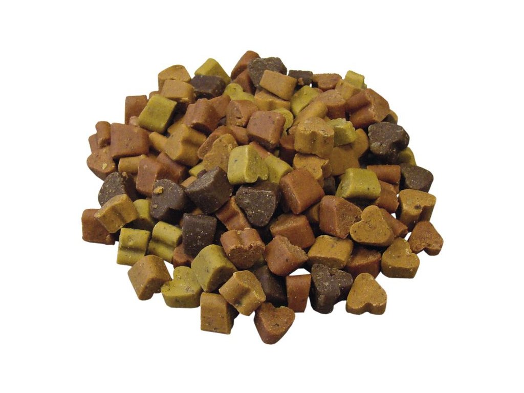 Ideální pomocník při výcviku. Poloměkké šťavnaté malé srdíčka pro malé psy s vysokým podílem masa. Ideální při výcviku nebo jako chutná malá odměna. Kostičky jsou díky vysokému podílu masa velice dobře snášeny a psům chutnají.