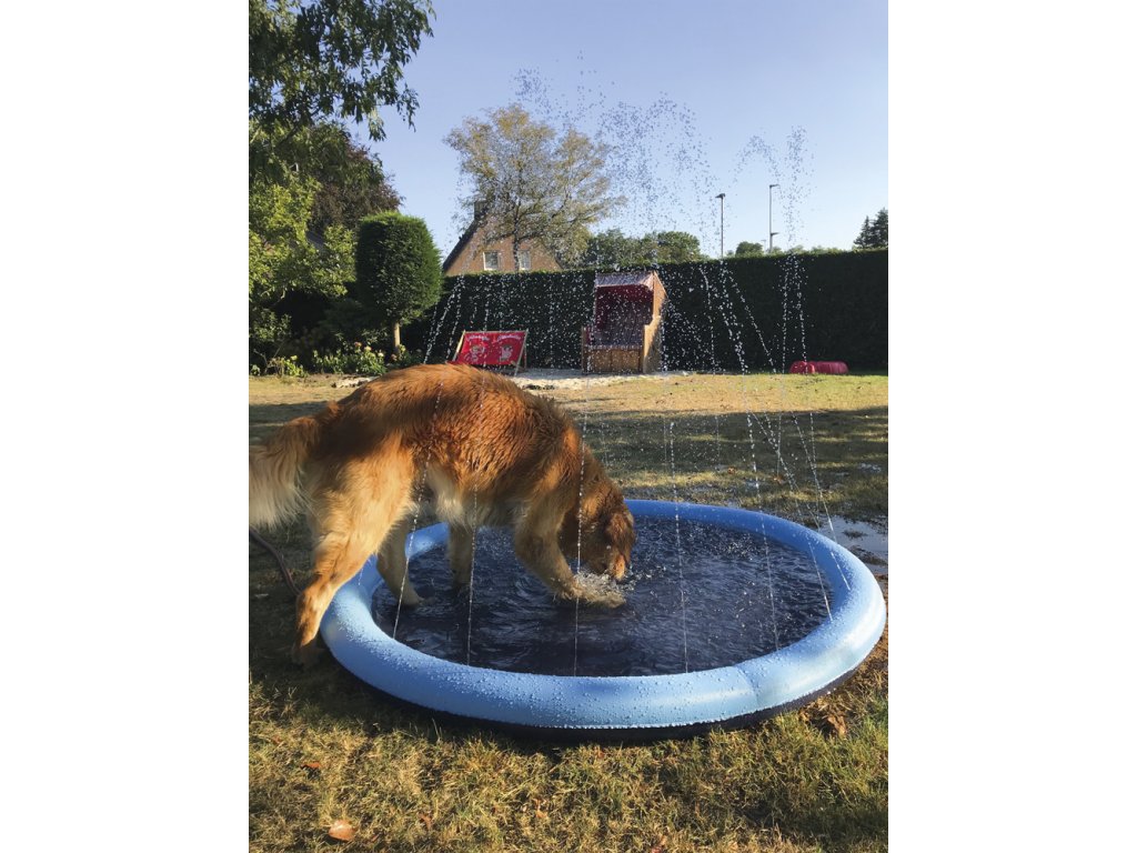 Podložka pro osvěžující chlazení v letních horkých dnech. Robustní podložka s malými otvory na okraji, ze kterých stříká voda. Možnost připojení k vodní hadici pomocí přiloženého konektoru. Zábavný a bezpečný způsob, jak ochladit své mazlíčky v horkých letních dnech!