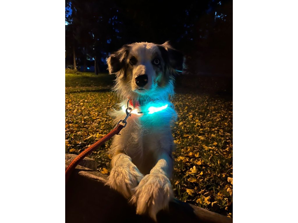LED světelný obojek pro psy. Bezpečnější venčení a procházky za tmy, šera, mlhy nebo deště. Obojek je lehký a zároveň pevný. Viditelná vzdálenost až na 300 m. Odolné proti dešti. Jednoduché dobíjení přes USB, které je součástí balení, bez nutnosti kupovat baterie