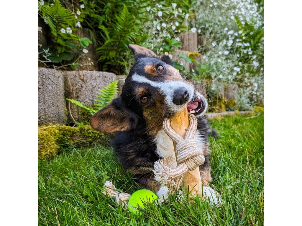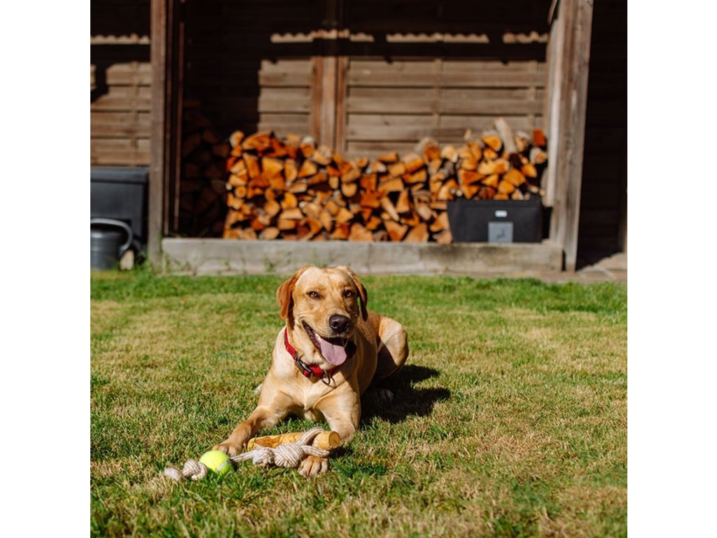 Hračku používejte pouze pod dohledem. Pokud je již dřevo tak malé, že by jej váš pes mohl polknout, nahraďte jej novým.