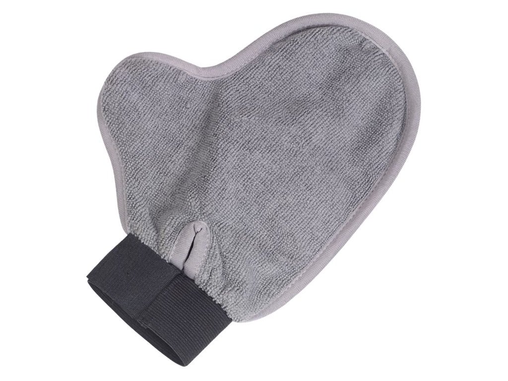 Tato gumová čistící a masážní rukavice v šedé barvě je na jedné straně vybavena mikrovláknem a druhé straně gumovými knoflíčky. Ty snadno a jemně odstraní staré chlupy a nečistoty ze srsti vašeho miláčka, čímž dosáhnete přirozeného lesku. Hlazení touto rukavicí má také masažní účinek a stimuluje krevní oběh.