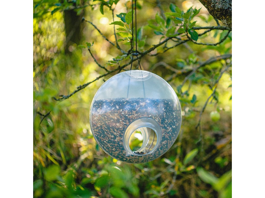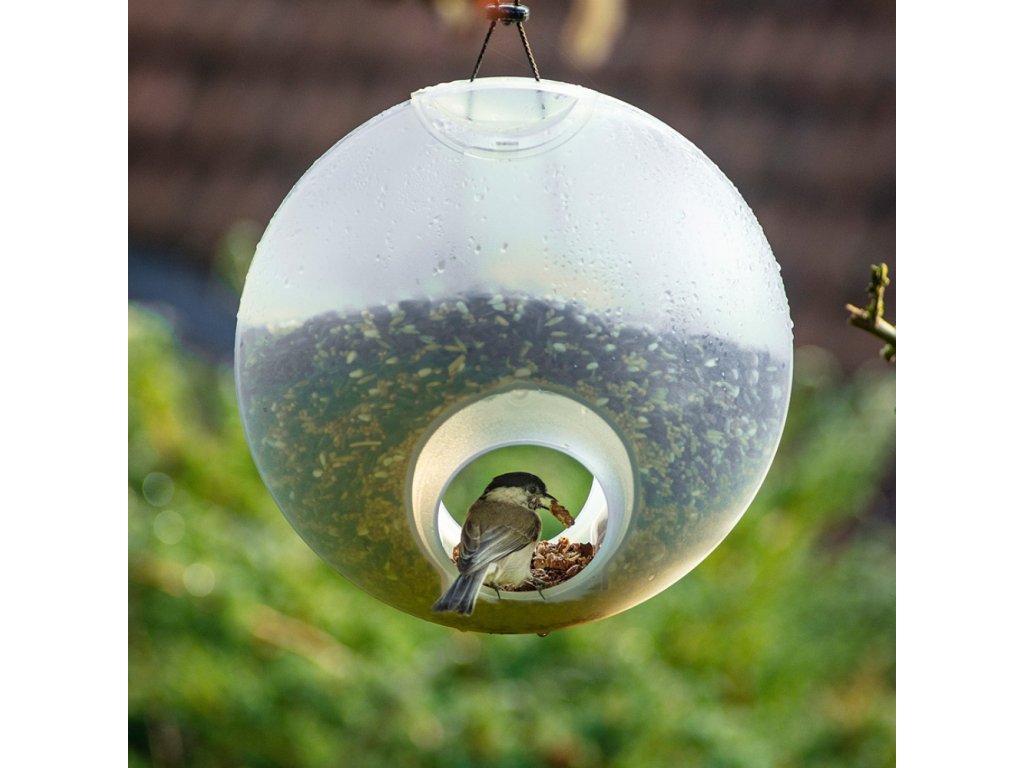 Krmítko s velkokapacitním zásobníkem umožňuje méně časté doplňování ptačí potravy.