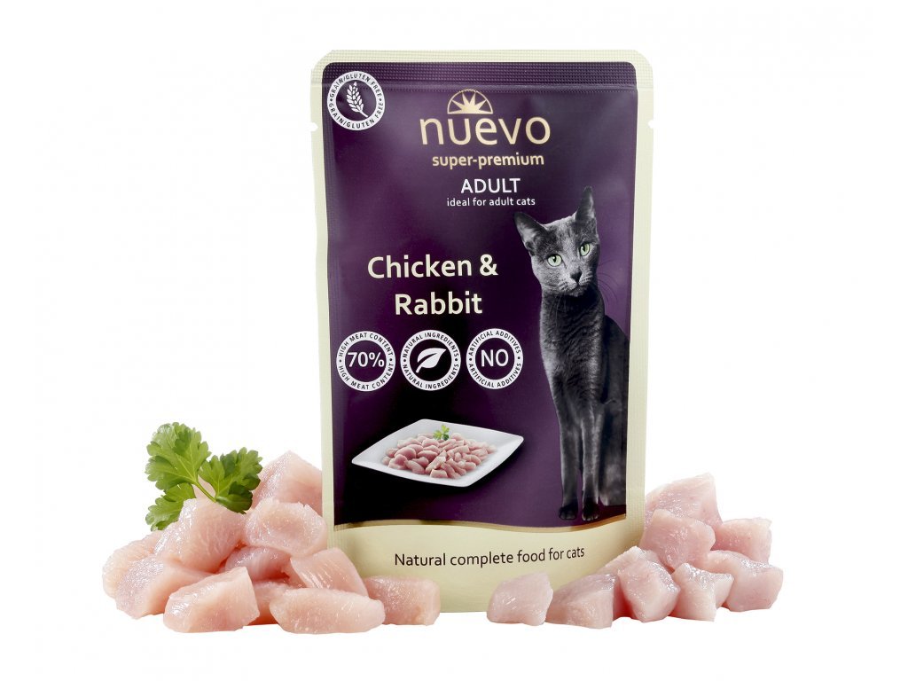 Kapsička Nuevo Adult s kuřecím a králičím masem. Jedinečná, superprémiová kapsička pro dospělé kočky všech plemen.