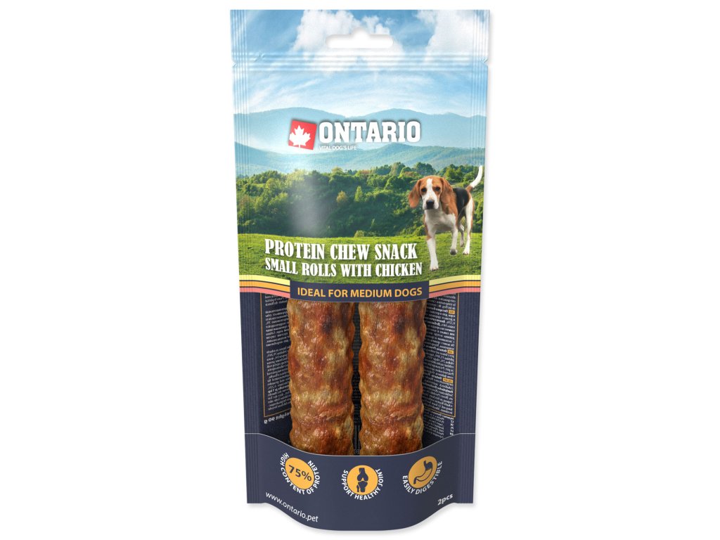 ONTARIO Protein žvýkací pamlsek malá rolka s kuřecím 2 ks 12,7 cm