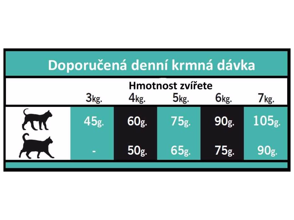 Přírodní superprémiové krmivo pro dospělé kastrované kočky, nebo kočky s nadváhou. Složené z kvalitních bílkovin a lehce stravitelných sacharidů v kombinaci s prospěšnými tuky. Speciální složení k zachování vitality a omezování tělesné hmotnosti. Krmivo obohacené o vitamíny, minerální látky a antioxidanty.