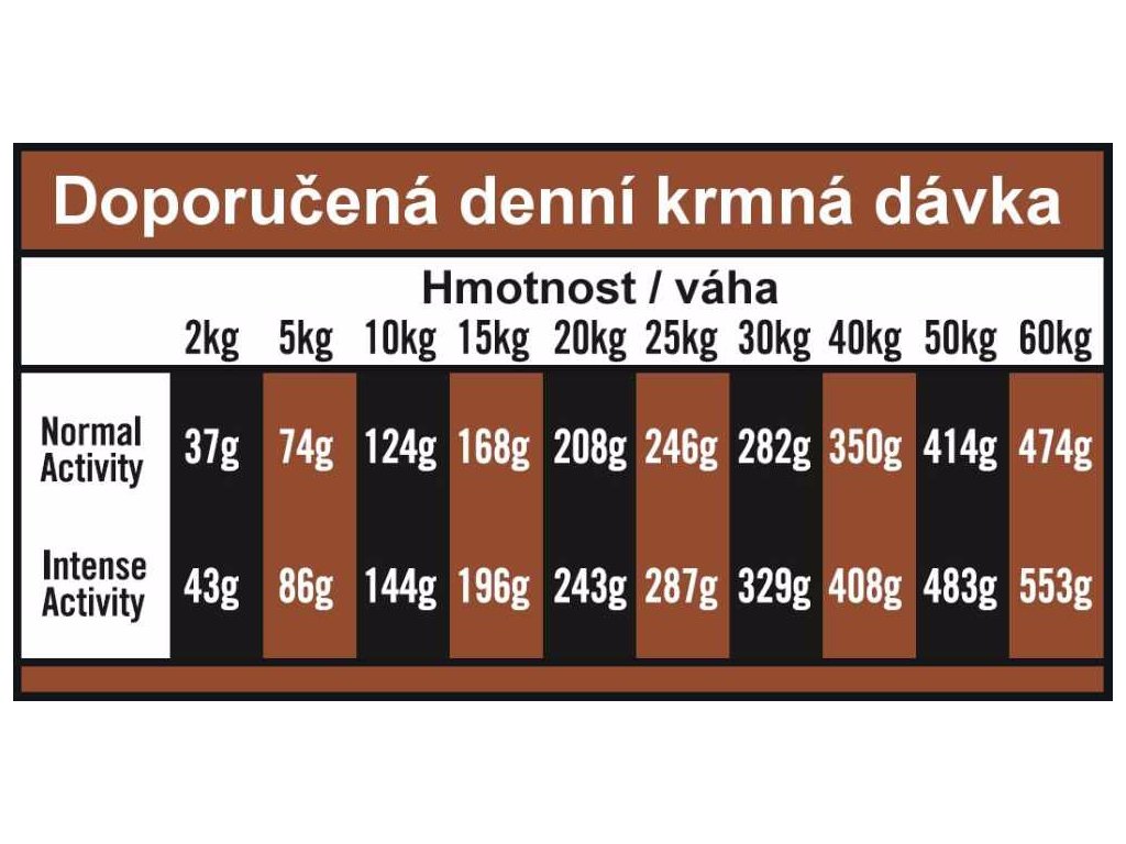 Jako jediný zdroj živočišných bílkovin s vyváženým poměrem bílkovin a tuku je použito kuřecí maso - monoproteinová strava výrazně snižuje riziko vzniku intolerancí a potravinových alergií.