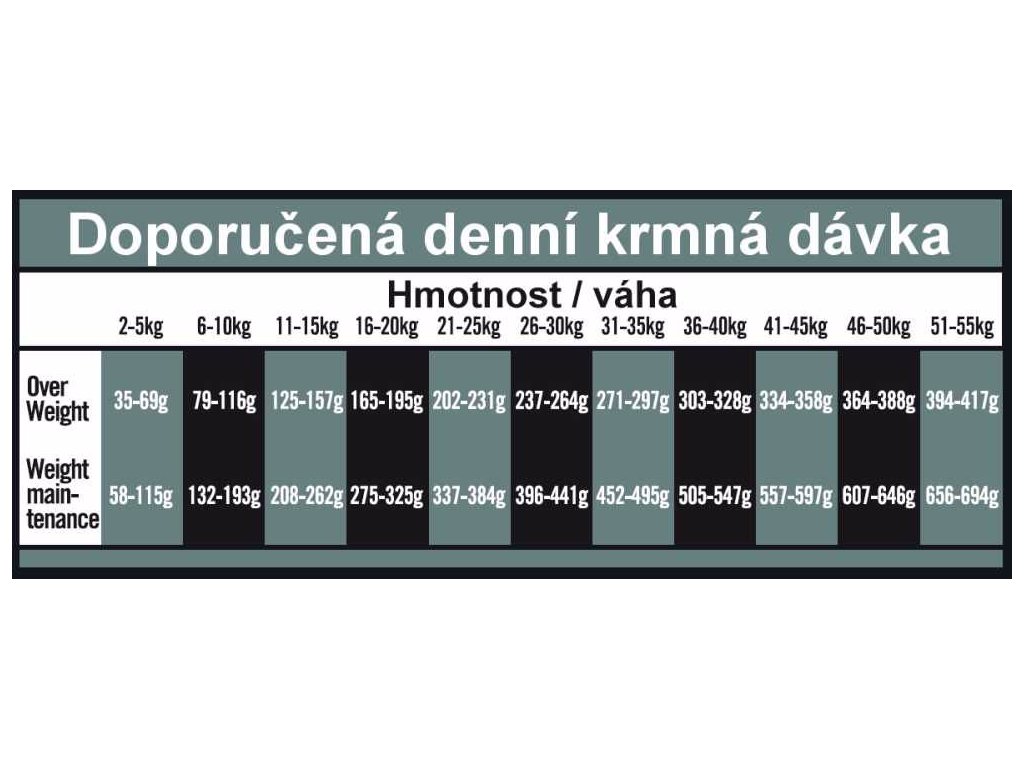 Přírodní superprémiové krmivo pro psy trpící nadváhou. Složené z kvalitních bílkovin a lehce stravitelných sacharidů v kombinaci s prospěšnými tuky. Krmivo obohacené o vitamíny, minerální látky a antioxidanty.