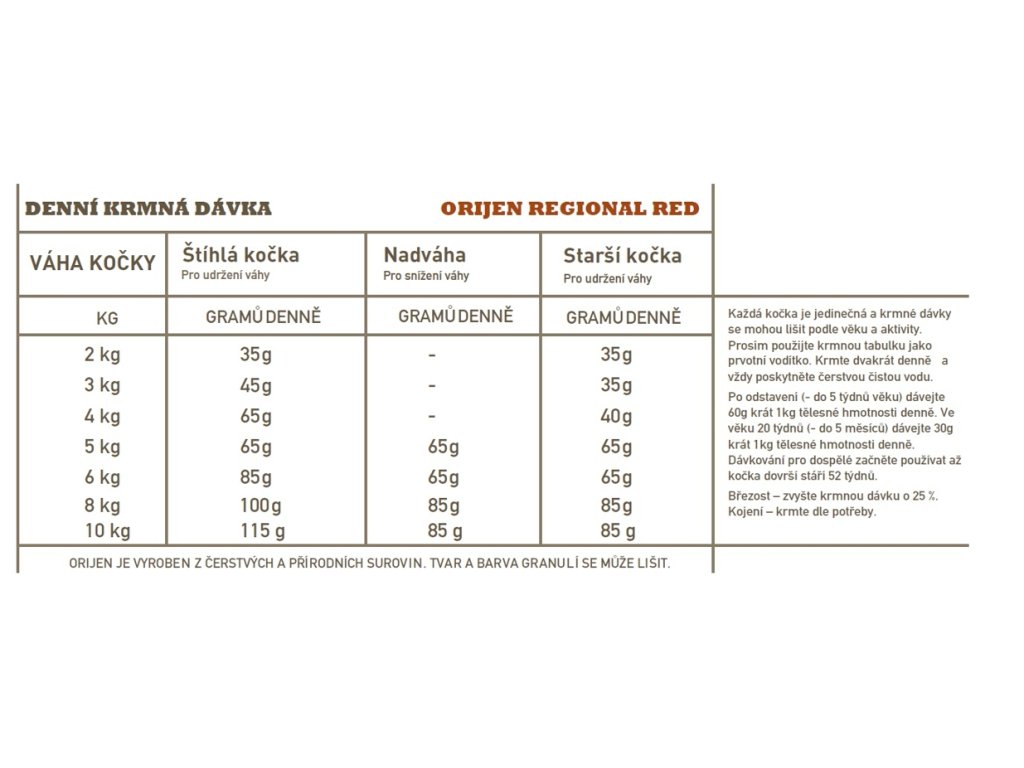 Orijen Cat Regional Red je plný proteinu pocházejících z hovězího plemene Angus, divokého kance, bizona, jehněte plemene Romney a tradičního kanadského vepřového. Všechny suroviny jsou nám dodávány místními dodavateli vždy čerstvé v bohatě výživném podílu Celé kořisti. Krmiva Orijen zaručí, že vaše milovaná kočka nebo kotě budou zdravé, spokojené a silné.