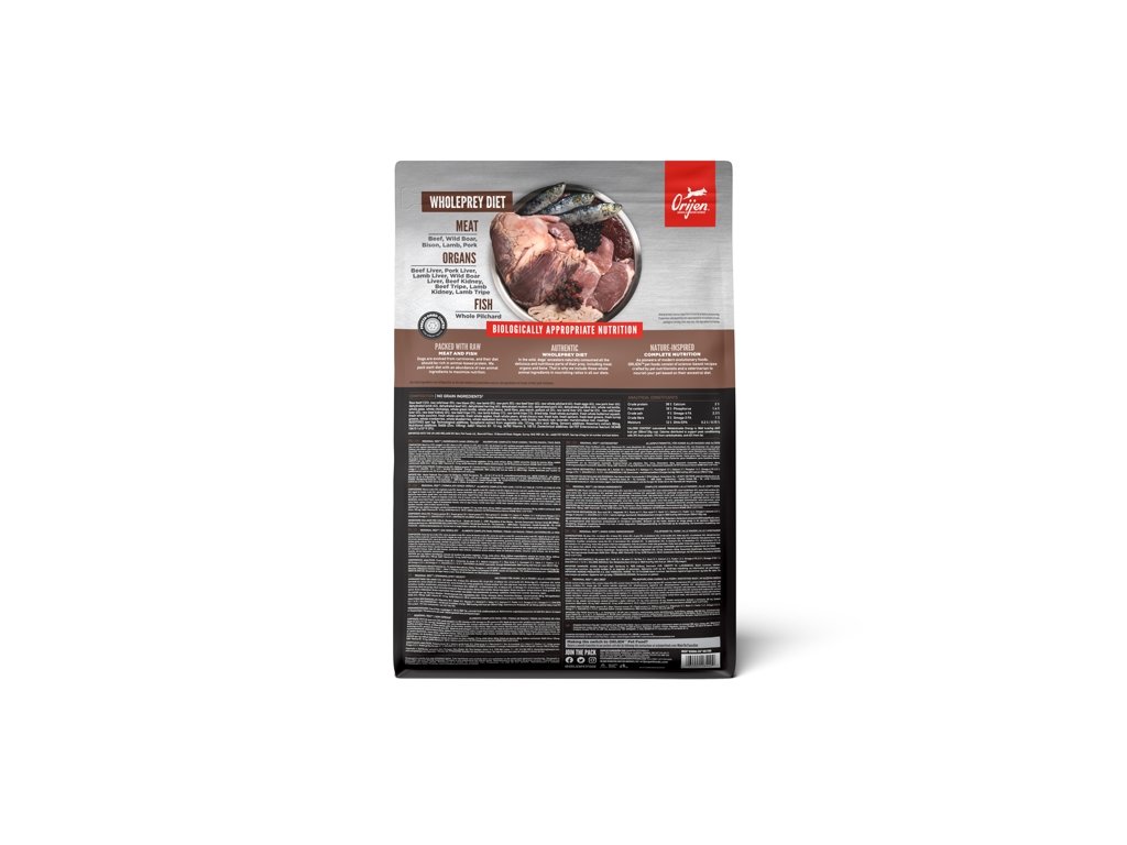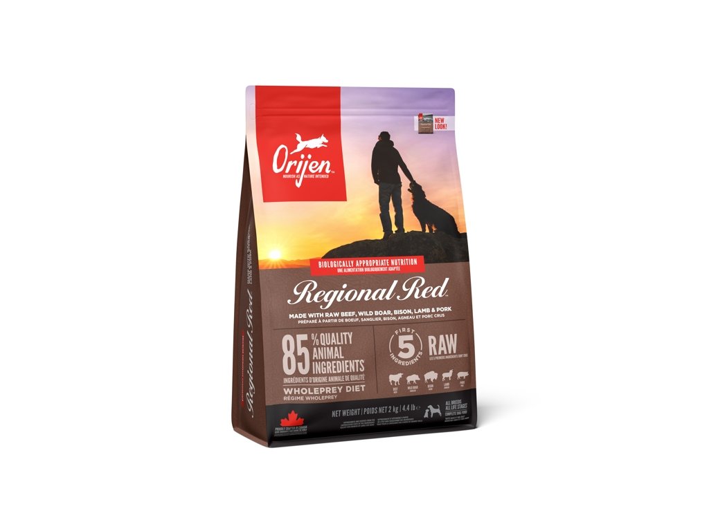 Orijen Dog Regional Red je krmivo vhodné pro psy všech plemen i věku. Obsahuje tmavé hovězí, bizoní, kančí, vepřové a jehněčí maso.