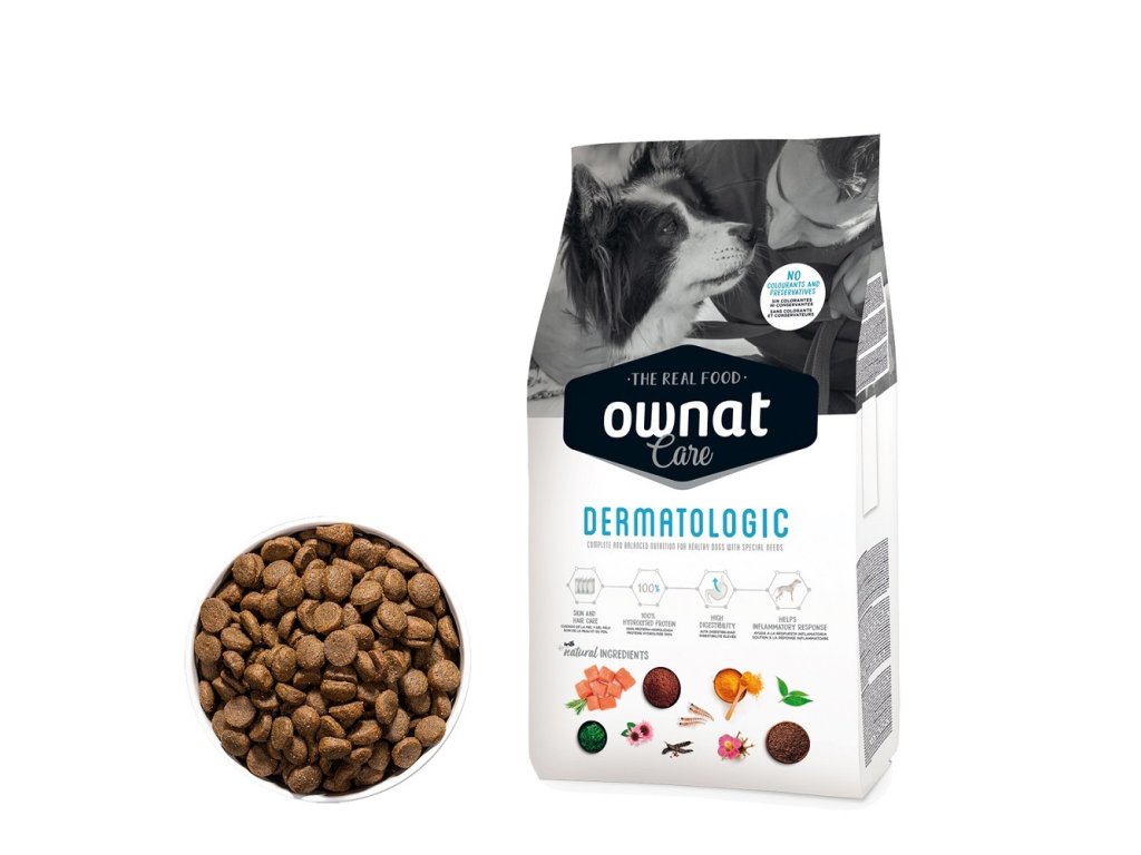 OWNAT CARE DERMATOLOGIC je určen k pravidelnému krmení psů s přecitlivělostí kůže. Poskytuje kompletní výživu. Je vyroben z kvalitních bílkovin s nízkým obsahem alergenů a s funkčními složkami, které zmírňují zarudnutí, svědění a zajišťují jemnou a zdravou kůži a srst.