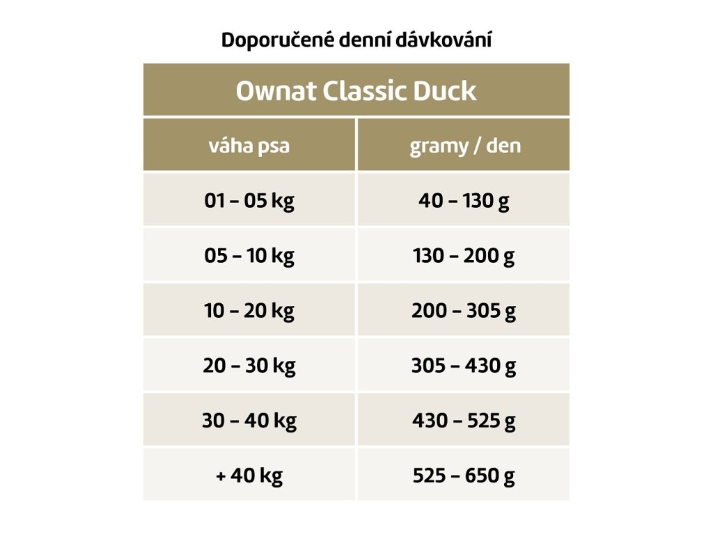 OWNAT CLASSIC DOG Duck je ideální volbou pro majitele, kteří chtějí svému psovi nabídnout chutnou a zdravou stravu, která splňuje všechny jeho výživové potřeby. Dopřejte svému psovi kvalitní krmivo, které podpoří jeho zdraví a zajistí mu spokojený život.