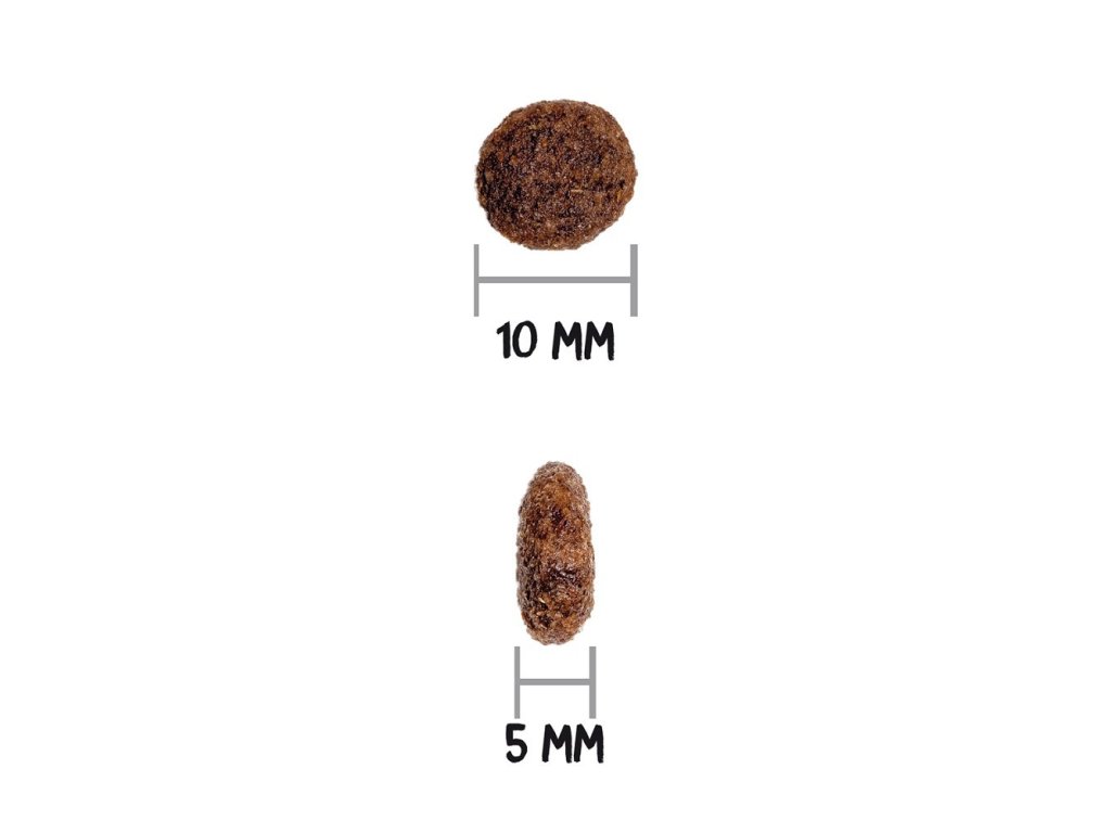 Přizpůsobená velikost granulí: Krmivo je navrženo tak, aby granule byly malé a snadno stravitelné pro psy menších plemen, což usnadňuje jejich konzumaci a trávení.
