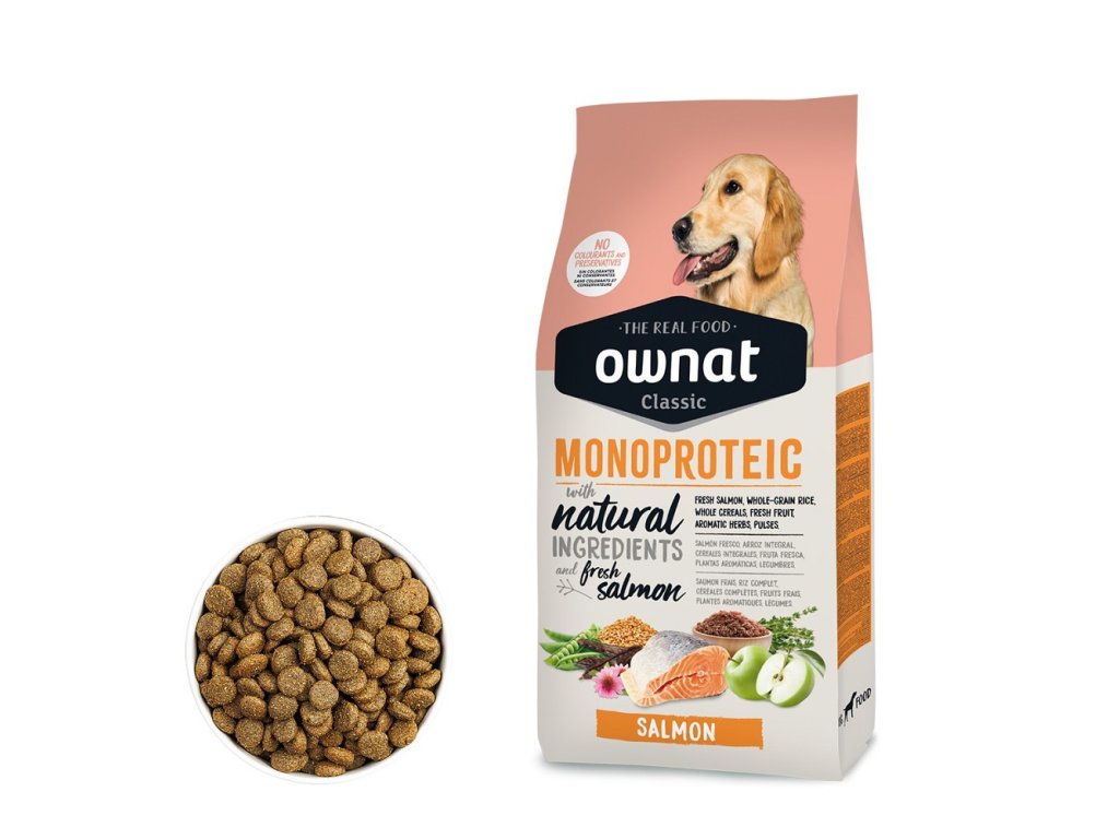 OWNAT CLASSIC MONOPROTEIC DOG Salmon je ideální volbou pro majitele psů, kteří chtějí svým mazlíčkům poskytnout kvalitní krmivo s jediným zdrojem bílkovin, které je chutné, výživné a šetrné k jejich zažívacímu systému. .