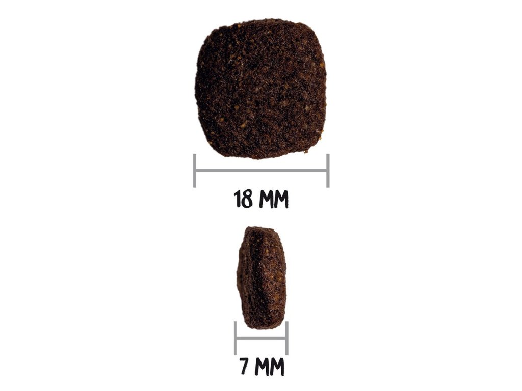 ANALYTICKÉ SLOŽKY: Protein: 38%, obsah tuku: 18%, hrubá vláknina: 3,5%, obsah anorganických látek: 8,5%, vlhkost: 8%, omega 6: 3,6%, omega 3: 0,37%, vápník: 1,4%, fosfor: 0,95%.