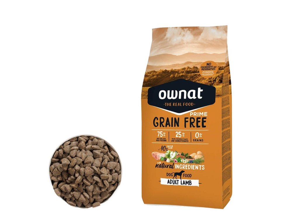 OWNAT GF PRIME DOG Adult Lamb je ideální volbou pro majitele dospělých psů, kteří hledají výživné, chutné a hypoalergenní krmivo pro své mazlíčky.
