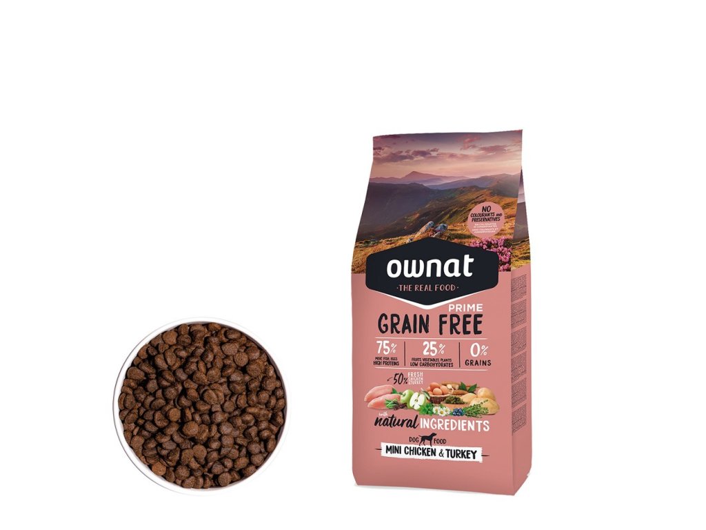 OWNAT GF PRIME DOG Mini Chicken & Turkey je ideální volbou pro majitele malých psů, kteří chtějí svým mazlíčkům dopřát kvalitní, hypoalergenní krmivo s kuřecím a krůtím masem.