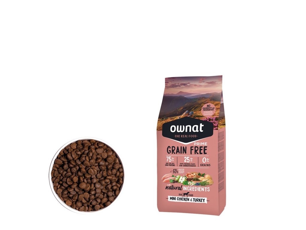 OWNAT GF PRIME DOG Mini Chicken & Turkey je ideální volbou pro majitele malých psů, kteří chtějí svým mazlíčkům dopřát kvalitní, hypoalergenní krmivo s kuřecím a krůtím masem.
