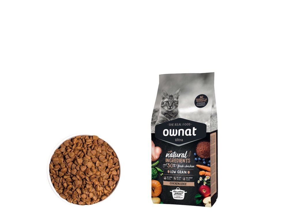 OWNAT ULTRA CAT Chicken & Rice je navrženo tak, aby poskytovalo kočkám potřebné živiny pro jejich každodenní potřeby a přitom podporovalo optimální funkci těla i zdraví trávicího traktu.