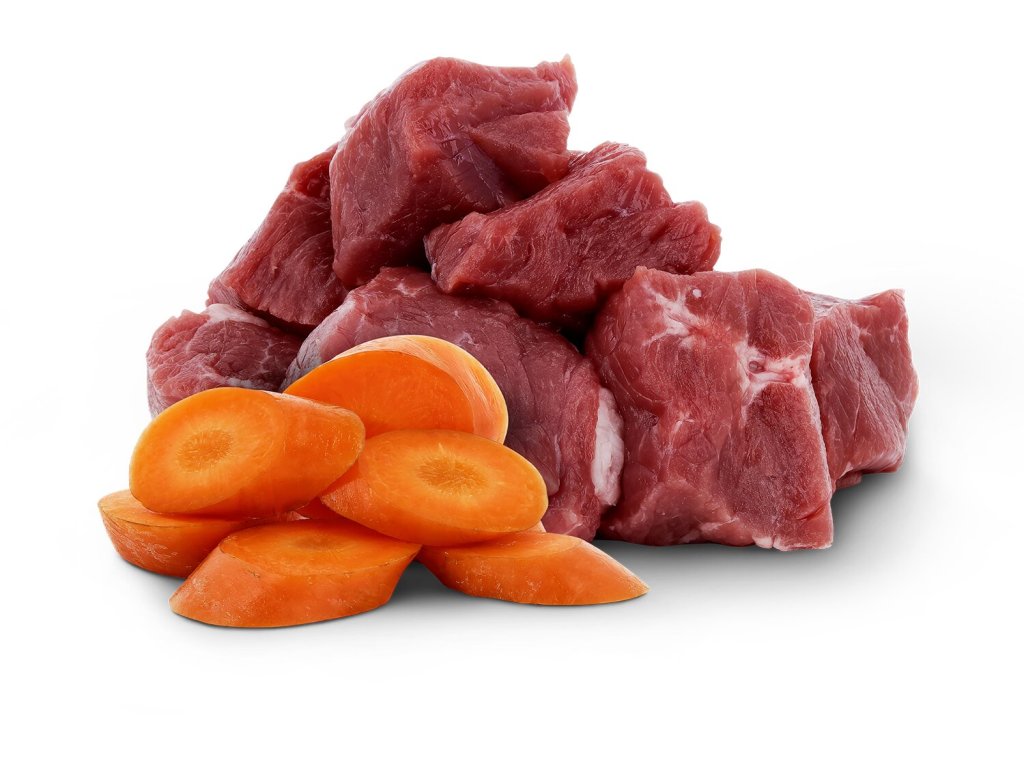 Složení: maso a vedlejší výrobky živočišného původu (kousky masa 88 %, z toho jehněčí maso 11,6 %), minerální látky, hrachový škrob, hrachová bílkovina, mrkev 0,45 %, čekankový inulin 0,4 %, lignocelulóza, slunečnicový olej
