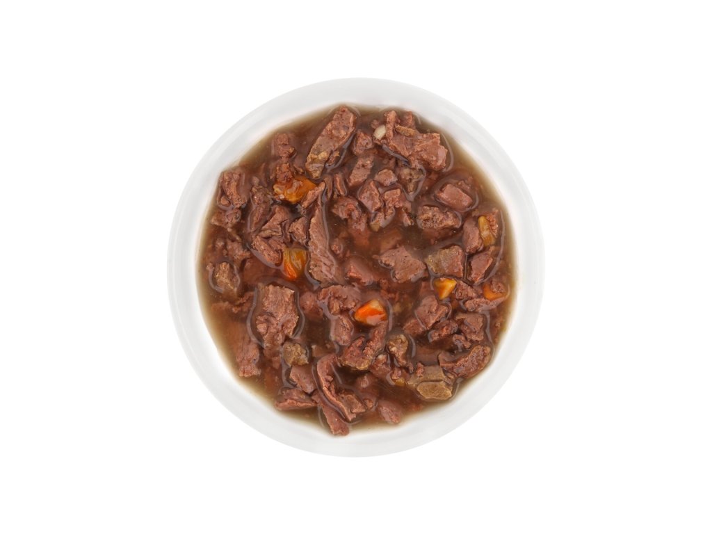 Šťavnaté kousky jehněčího masa s mrkví v lahodné omáčce tvoří kompletní krmivo s vyváženým složením, které přispívá ke spokojenému a aktivnímu životu dospělých koček všech plemen a velikostí.