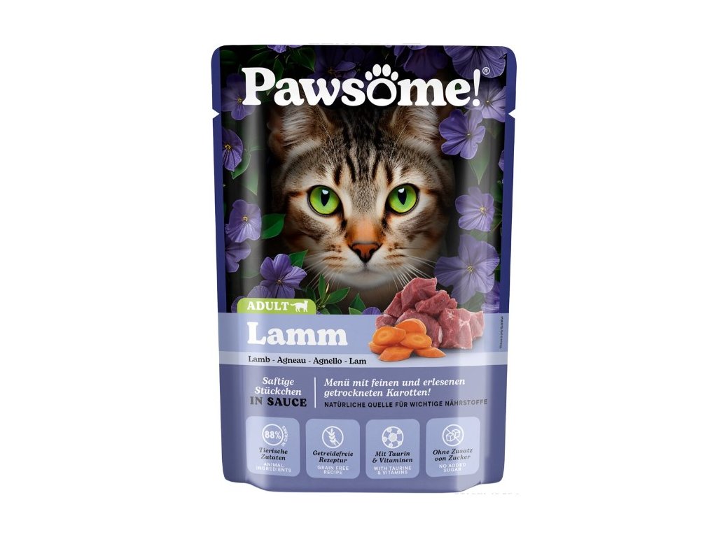 Kočky jsou masožravci, a proto krmivo Pawsome! obsahuje velké množství živočišných bílkovin a nenajdete v něm obiloviny ani přidaný cukr – protože ani jedno do kočičí misky nepatří. Je vytvořeno tak, aby poskytovalo kočkám jedinečný chuťový zážitek a zároveň jim dodalo živiny, nezbytné pro jejich každodenní dobrodružství.