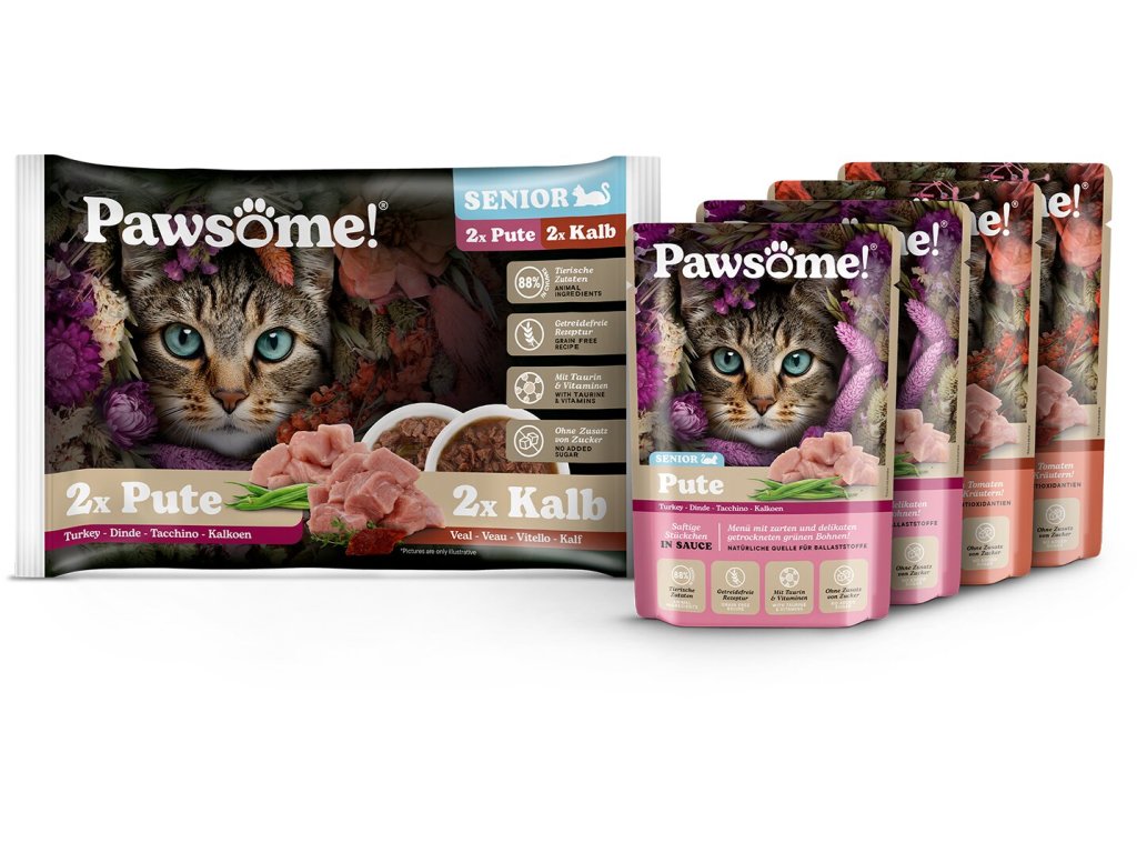 Pawsome! Senior s telecím/ s krůtím masem Multipack 4x85 g