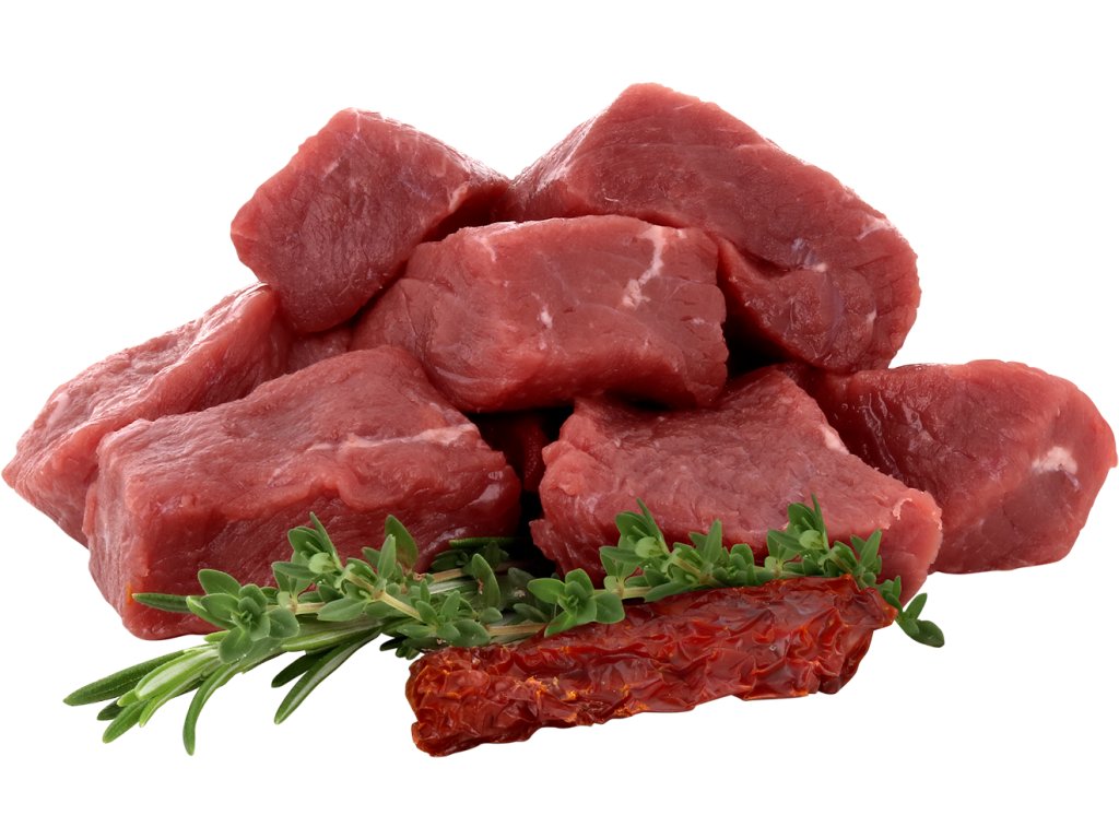 Složení: maso a vedlejší výrobky živočišného původu (kousky masa 88 %, z toho hovězí maso 40,6 %), minerální látky, hrachový škrob, hrachová bílkovina, rajčata 0,45 % (sušená), inulin z čekanky 0,4 %, lignocelulóza, rozmarýn 0,025 %